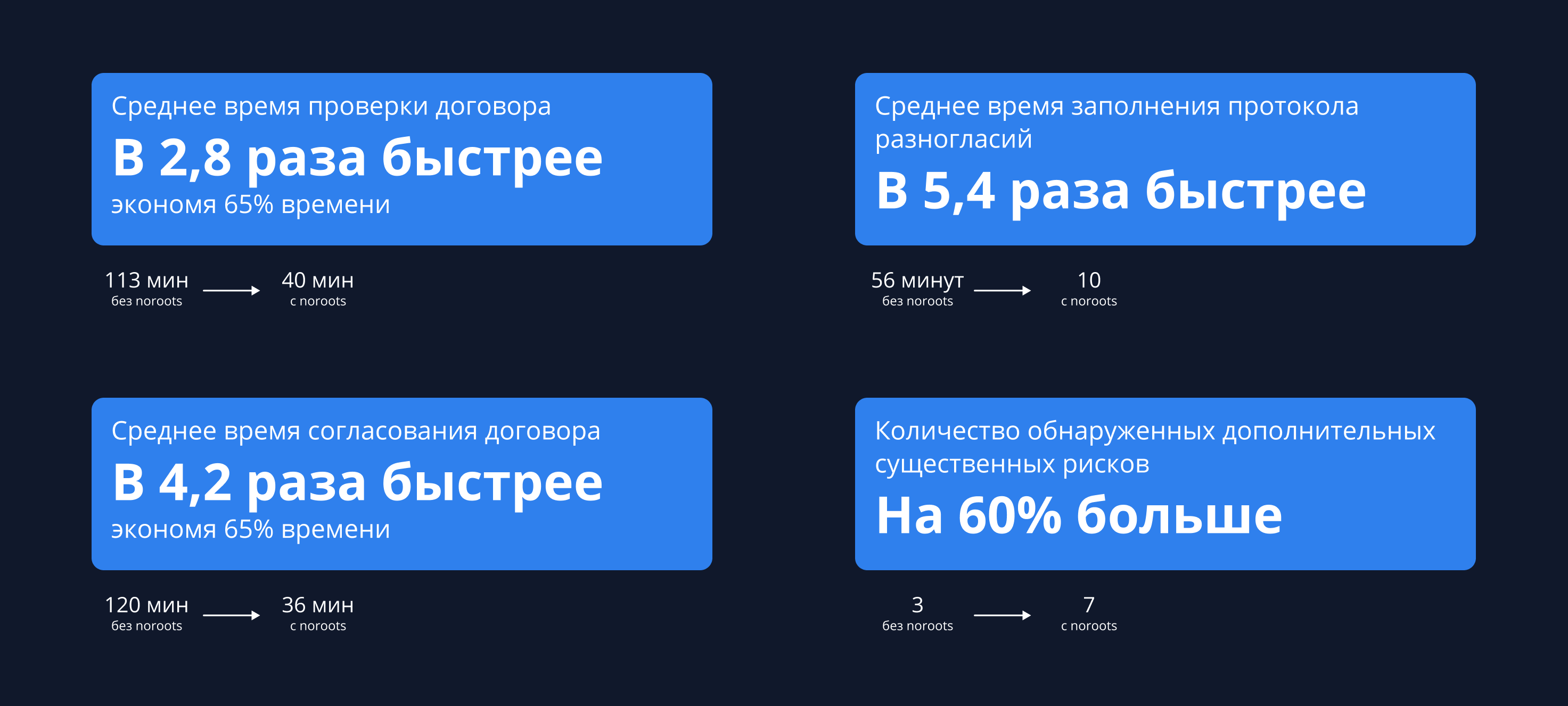 Валентин Микляев рекомендует потратить время на анализ процессов, чтобы понять, где автоматизация принесет наибольшую пользу — решились ли проблемы, которые раньше доставляли беспокойство. Например, таковы метрики эффективности внедрения noroots в компаниях: